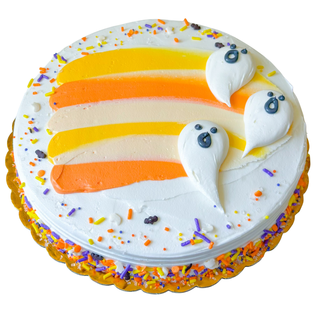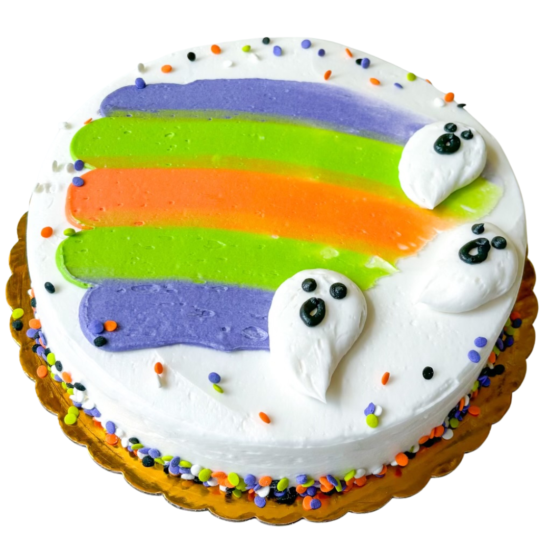 A frightfully fun treat for Halloween! This single-layer 8" round cake is topped with colorful buttercream ghosts and playful seasonal accents, perfect for adding a pop of Halloween spirit to your bakery case. Designed to complement both spooky and kid-friendly displays, Hallowboo! is available in multiple colorways to match your store’s merchandising style. Whether you're going cute or creepy, there's a Hallowboo! to fit the vibe.